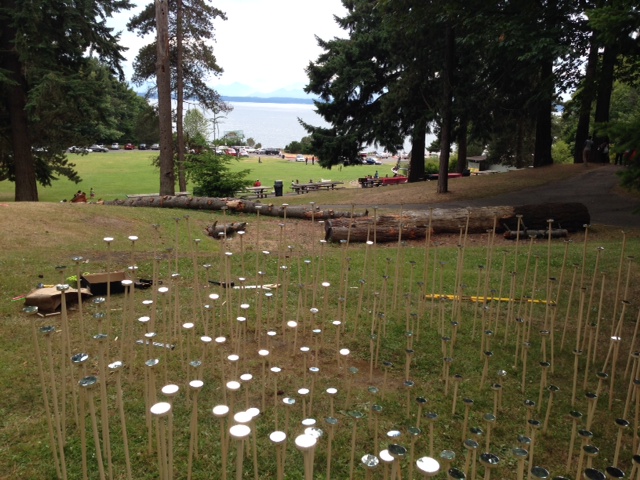 With visits out to Carkeek Park to check on my own piece, I’ve also had time for a quick tour of all the other installations. I had a longer tour of the Lower Meadow works this past Tuesday. It was nice to have more time to peer into, walk around, or linger and listen to other viewers comments. I decided to include a couple favorite, teaser photos, but will leave the rest for your visit…